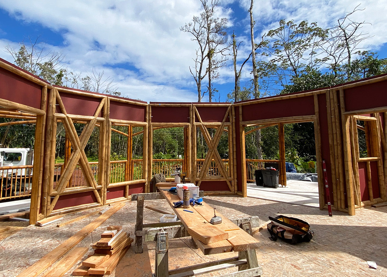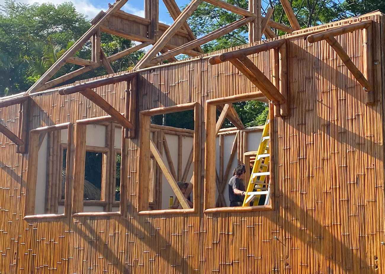 With the hybrid model, the walls are constructed using locally sourced materials and are conventionally framed by your contractor. Once your foundation and perimeter walls are in place, the remaining bamboo elements from your kit are assembled. Both the signature and hybrid buildings look identical from the outside; however, the hybrid model offers the added benefit of double walls for improved insulation.