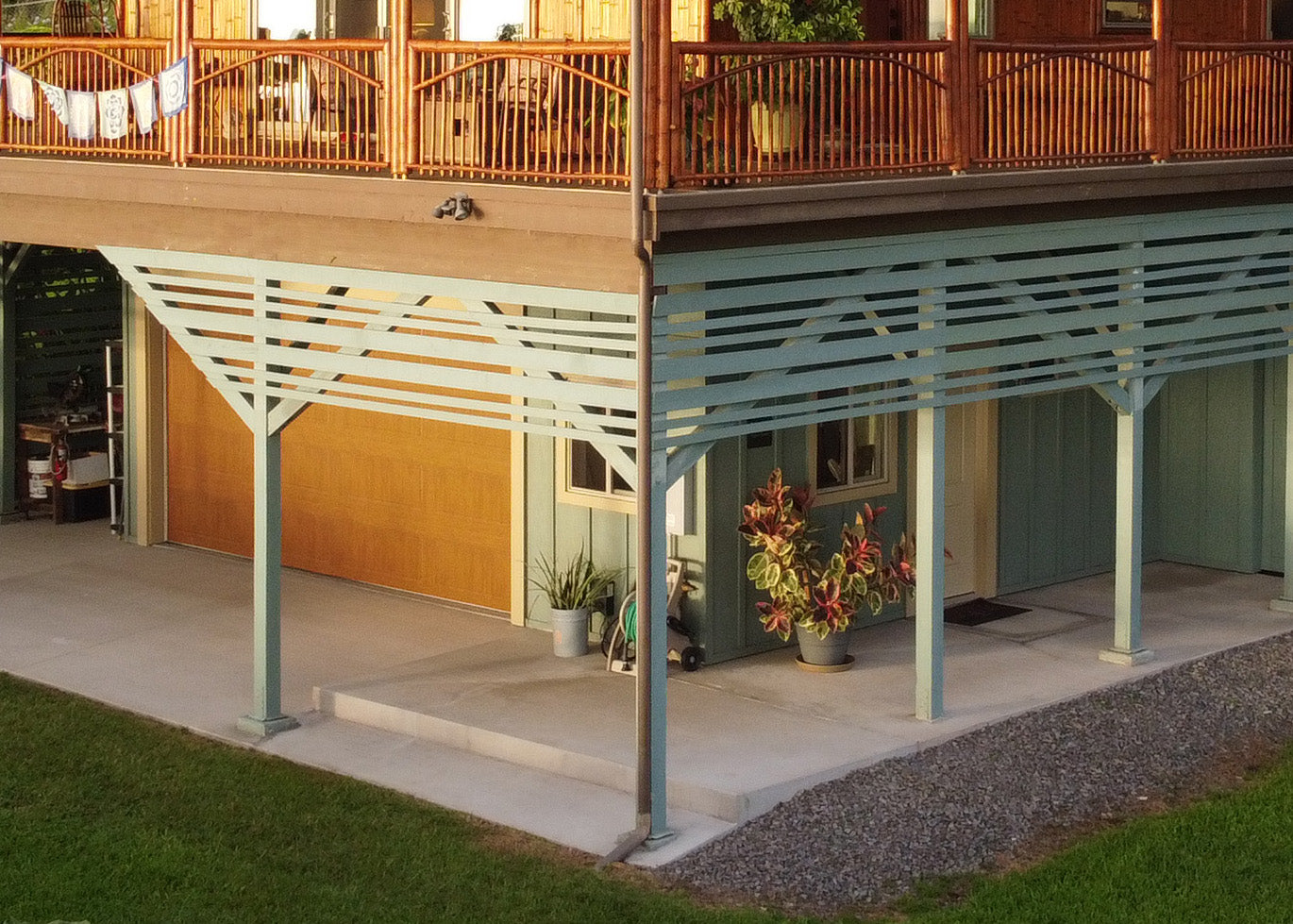 Our kits come with substantial lanai space that allows for comfortable indoor-outdoor living. While the porch posts and railings are included in the kit, decking material will be selected by you and installed by your contractor, and is NOT included in the building package.