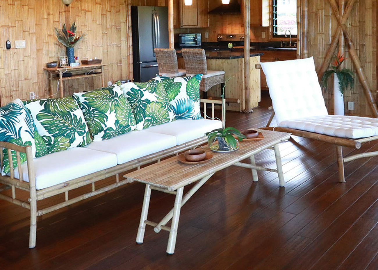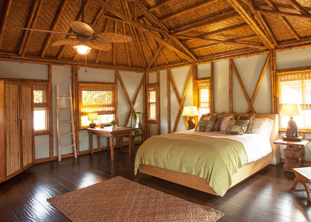 This kit is great for temperate climates with building codes that allow single wall construction. With the signature kit, you have the ability to select your interior wall finish—either: a paint color of your choice (pictured above is a white paint finish), woven bamboo, or split bamboo. No matter the choice, these wall panel finishes are included in the kit cost. With this building package, you can enjoy beautiful exposed bamboo throughout your entire home.