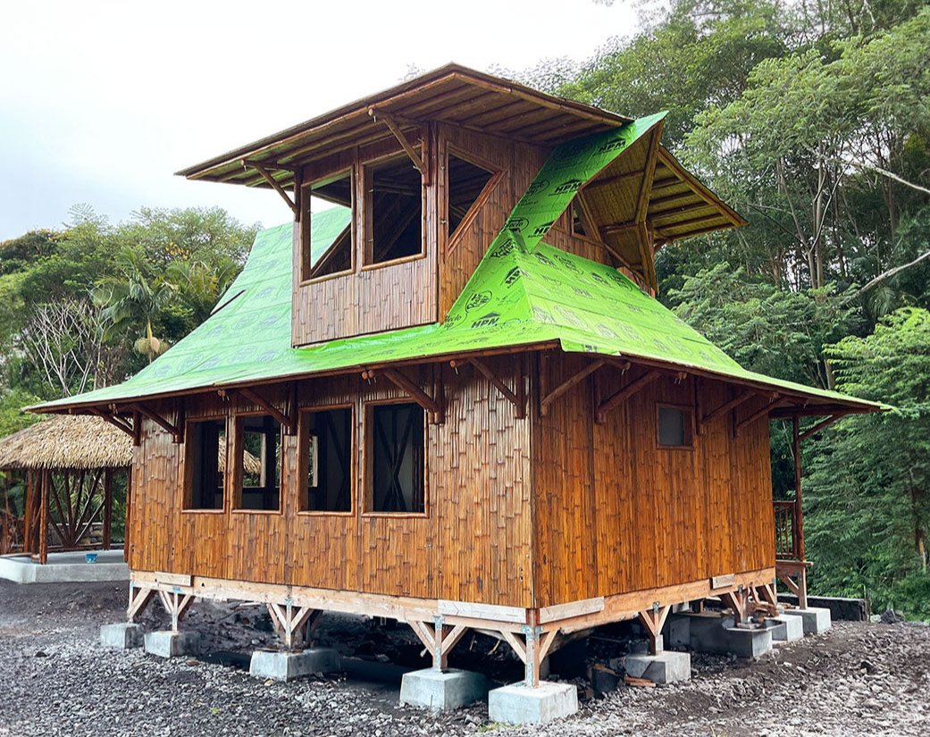 Our bamboo structural roof works with a variety of roofing material, giving you the ability to choose the material you prefer, but it is not included in the building package.