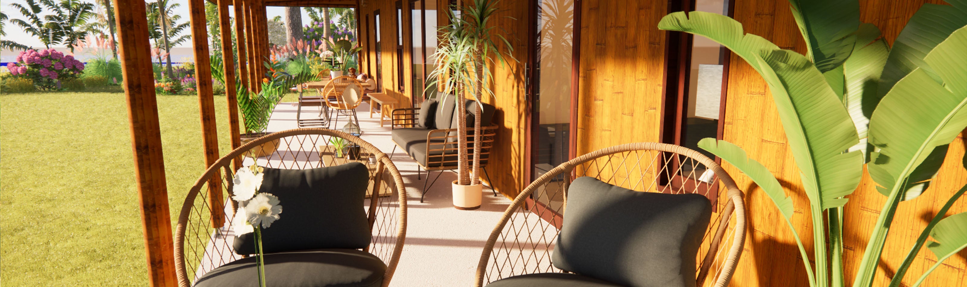 - Bamboo-framed walls if purchasing the Signature Kit (The Hybrid kit will NOT include bamboo walls, as the walls will be conventionally framed and built with locally sourced materials.)