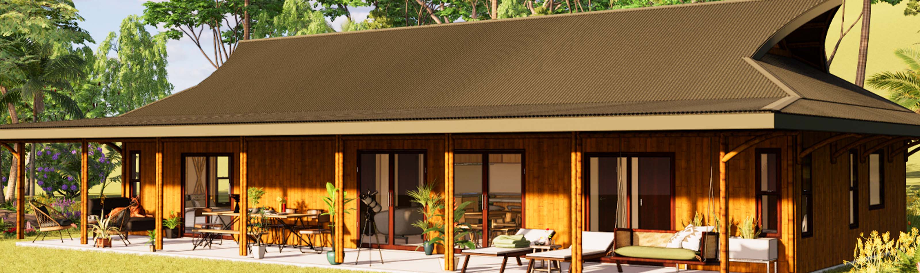 - Bamboo-framed walls if purchasing the Signature Kit (The Hybrid kit will NOT include bamboo walls, as the walls will be conventionally framed and built with locally sourced materials.)