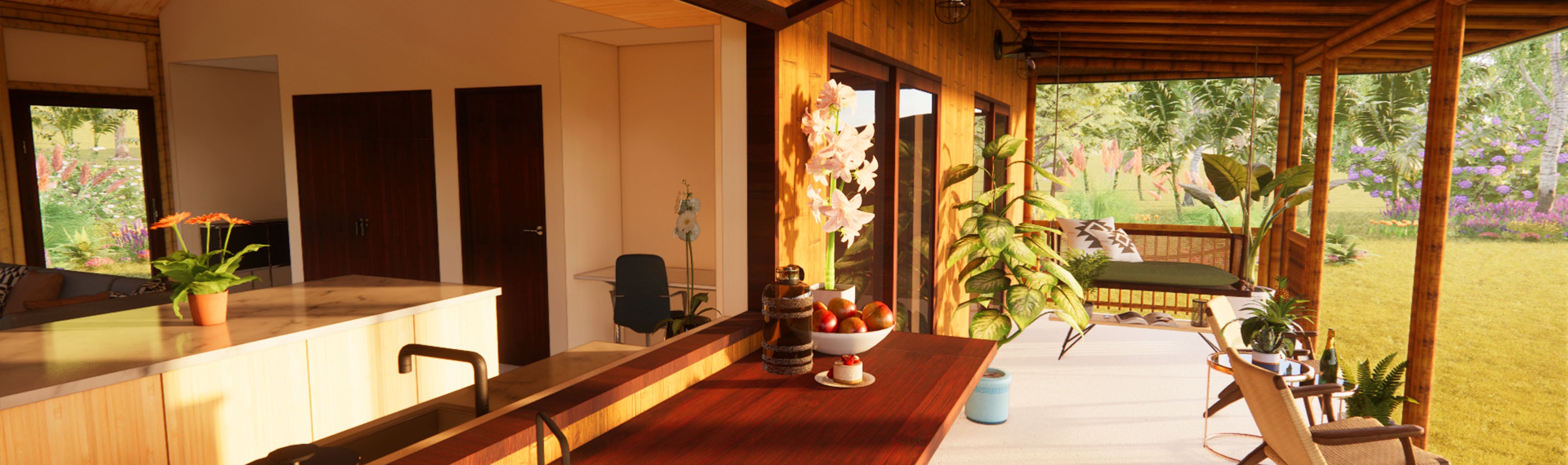 - Bamboo-framed walls if purchasing the Signature Kit (The Hybrid kit will NOT include bamboo walls, as the walls will be conventionally framed and built with locally sourced materials.)
