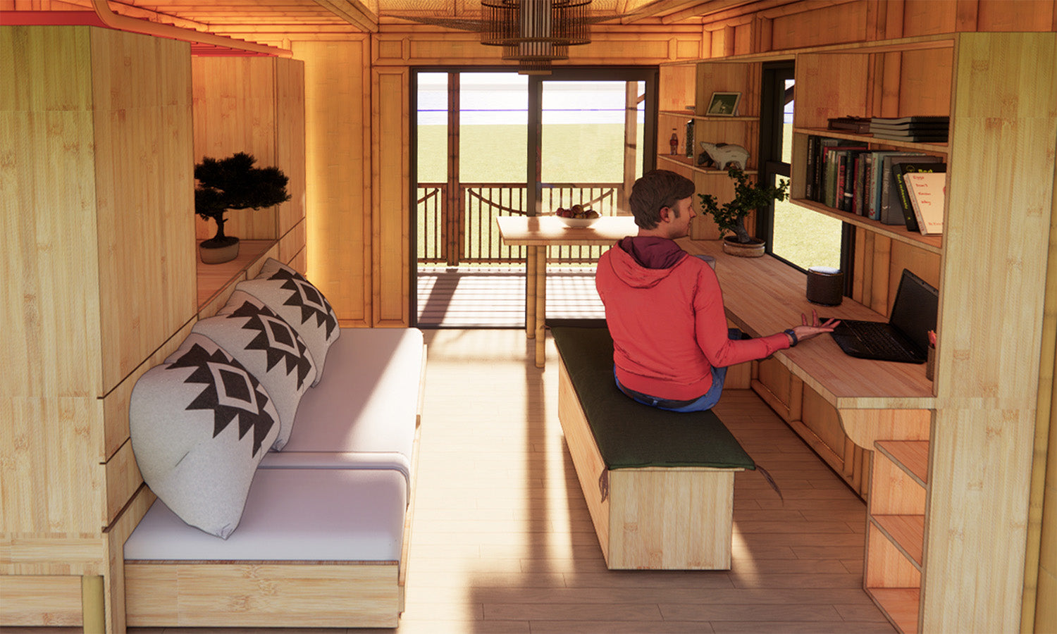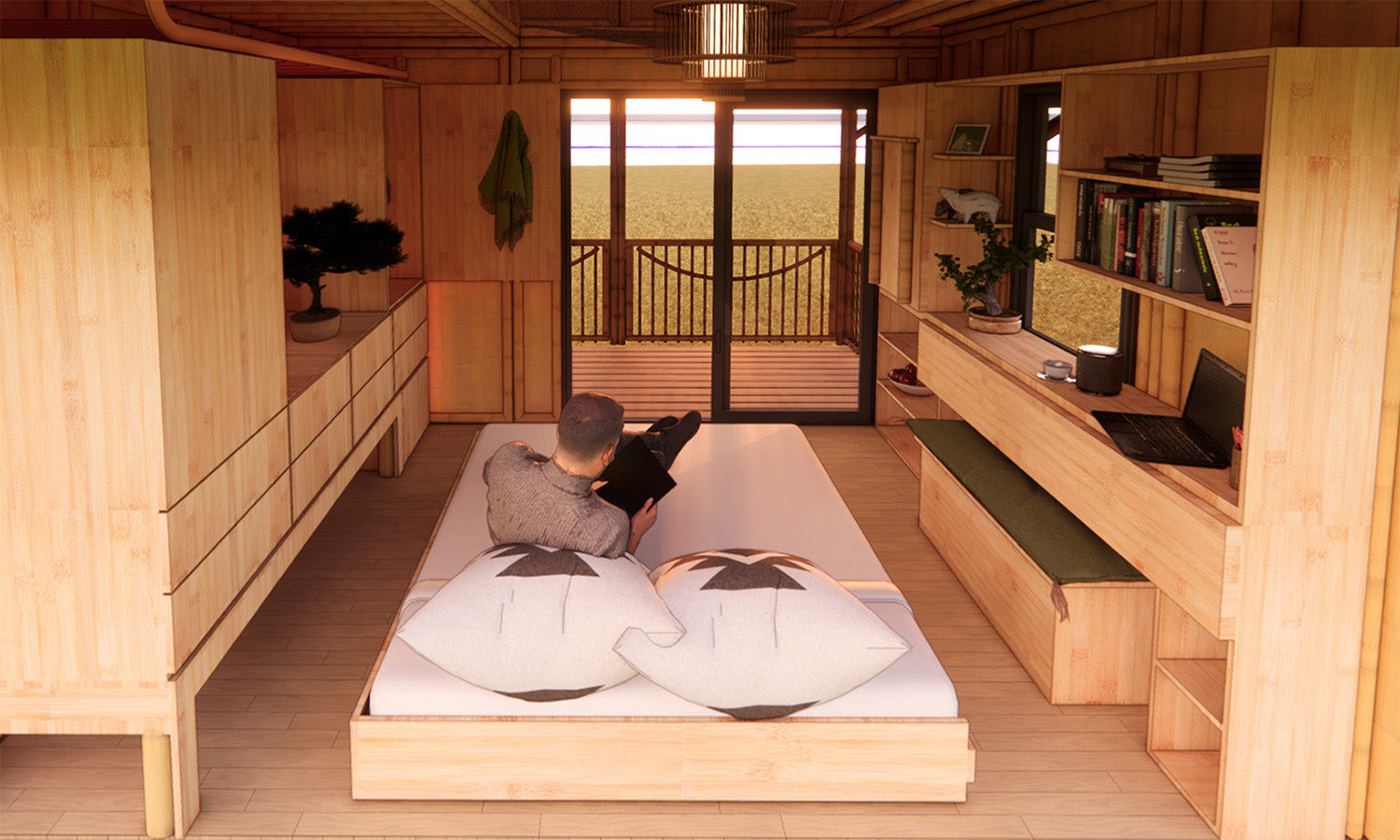 Bamboo Living can design and manufacture custom built-in furniture, featuring items like fold-out desks, tables, and pull-out beds. This flexible system is ideal for small-space living without sacrificing comfort. Stay tuned for our upcoming add-on furniture bundles!