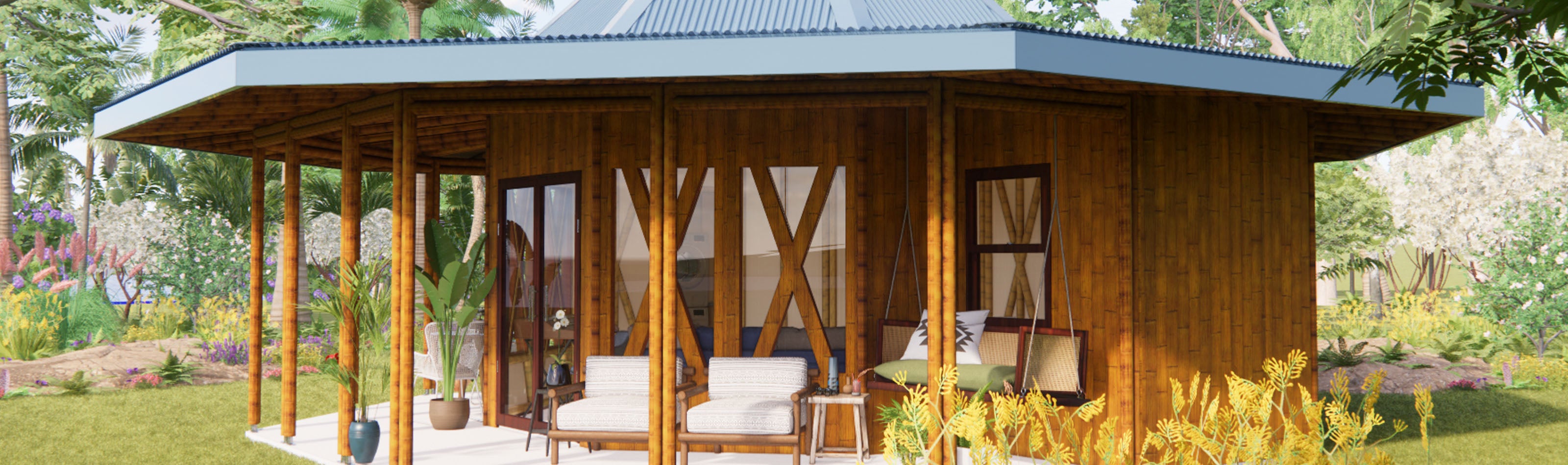 - Bamboo-framed walls if purchasing the Signature Kit (The Hybrid kit will NOT include bamboo walls, as the walls will be conventionally framed and built with locally sourced materials.)