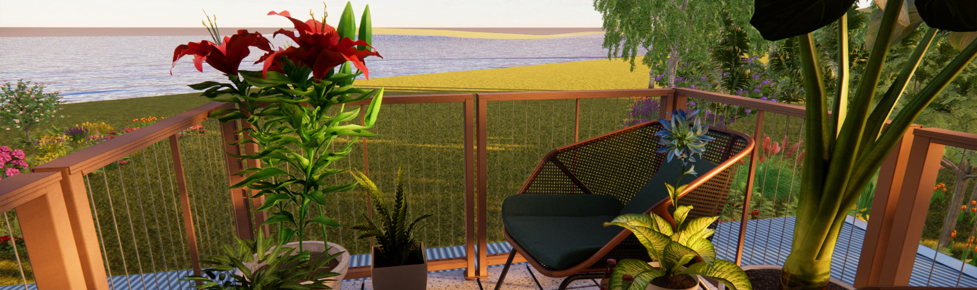 If your home's foundation is elevated off the ground any amount, we recommend adding porch railings for your safety. Our bamboo porch railings to match the home kit can be added for: