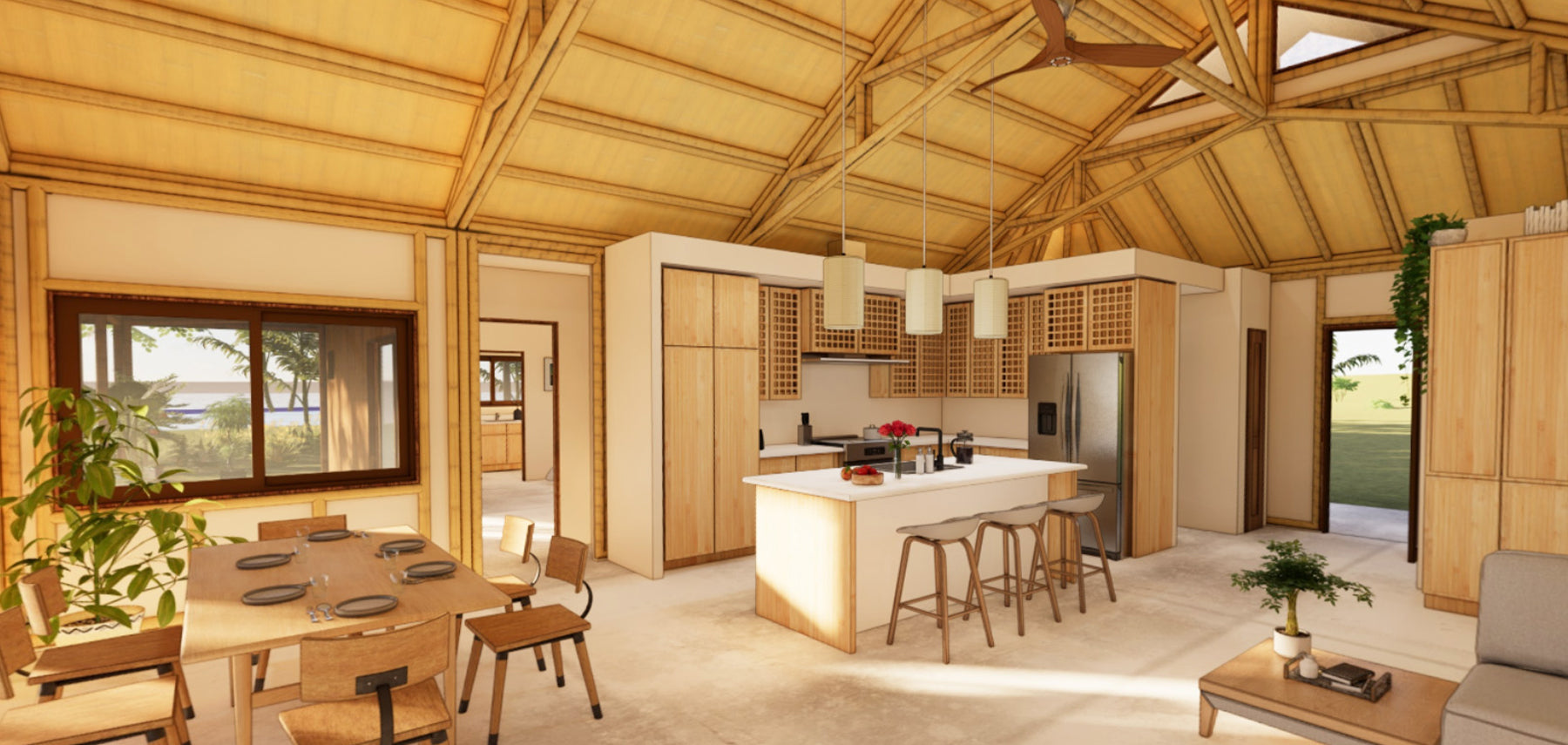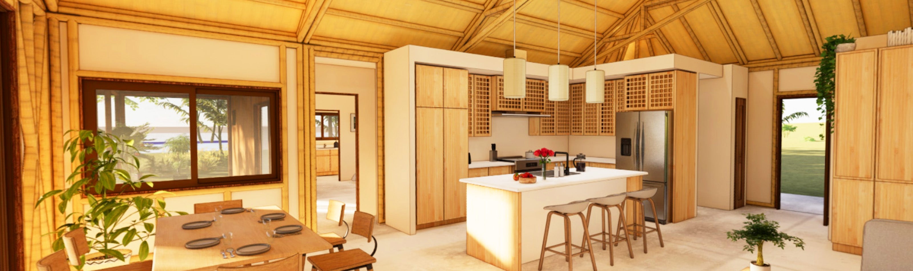 - Bamboo-framed walls if purchasing the Signature Kit (The Hybrid kit will NOT include bamboo walls, as the walls will be conventionally framed and built with locally sourced materials.)
