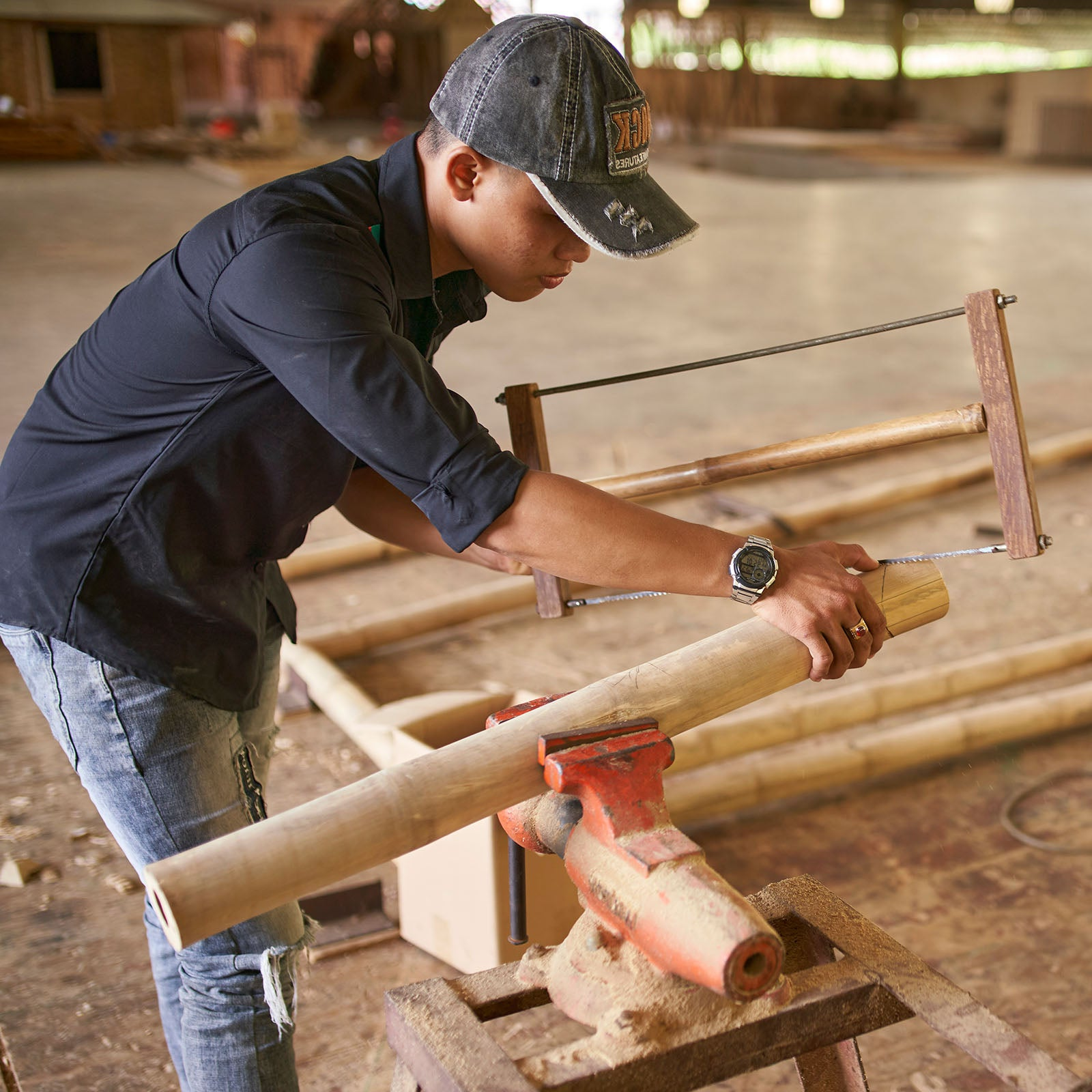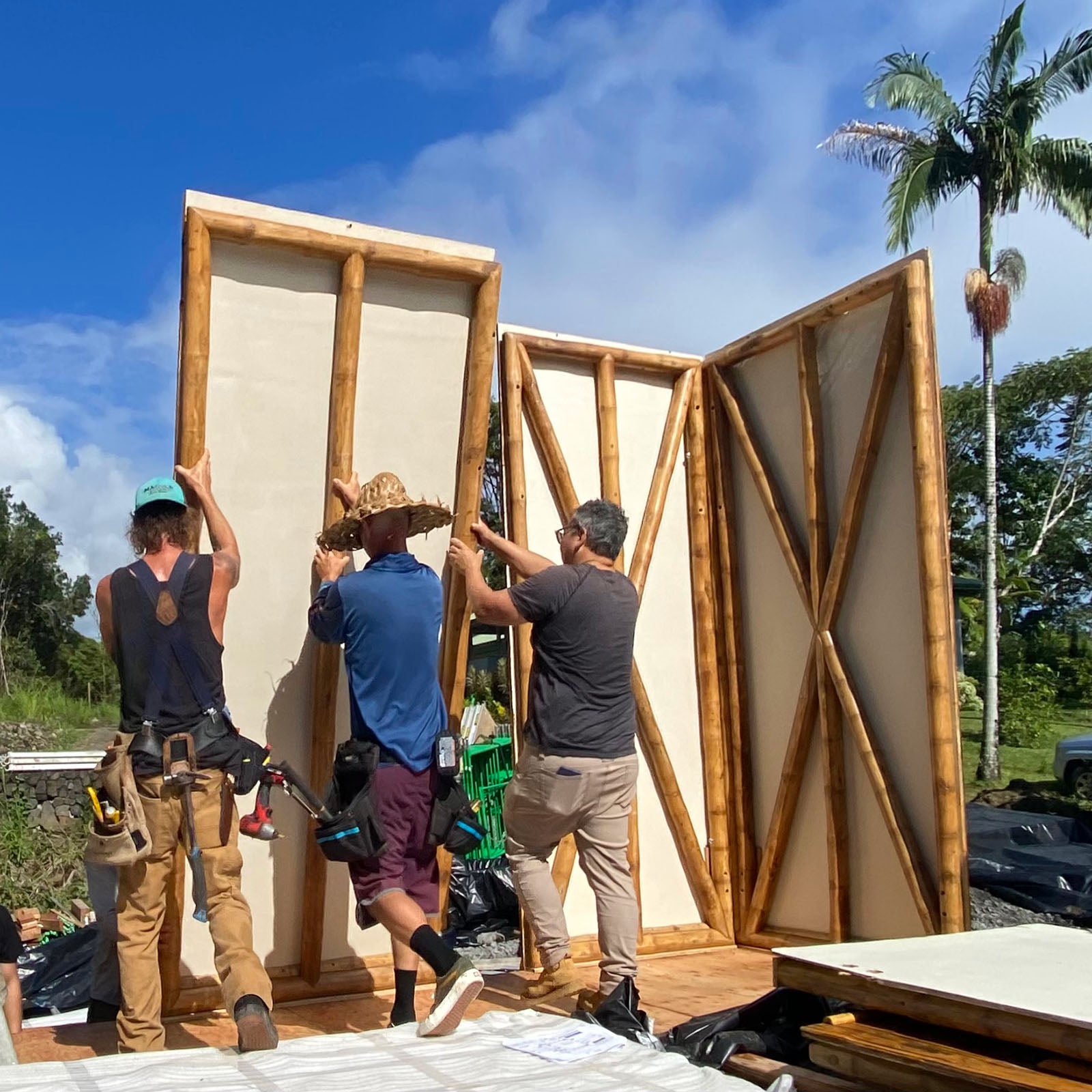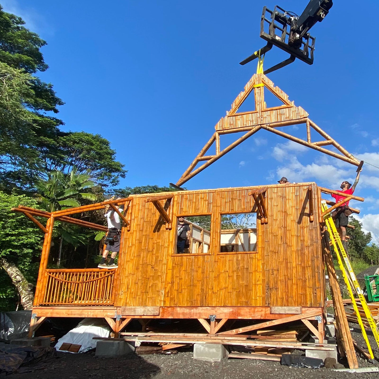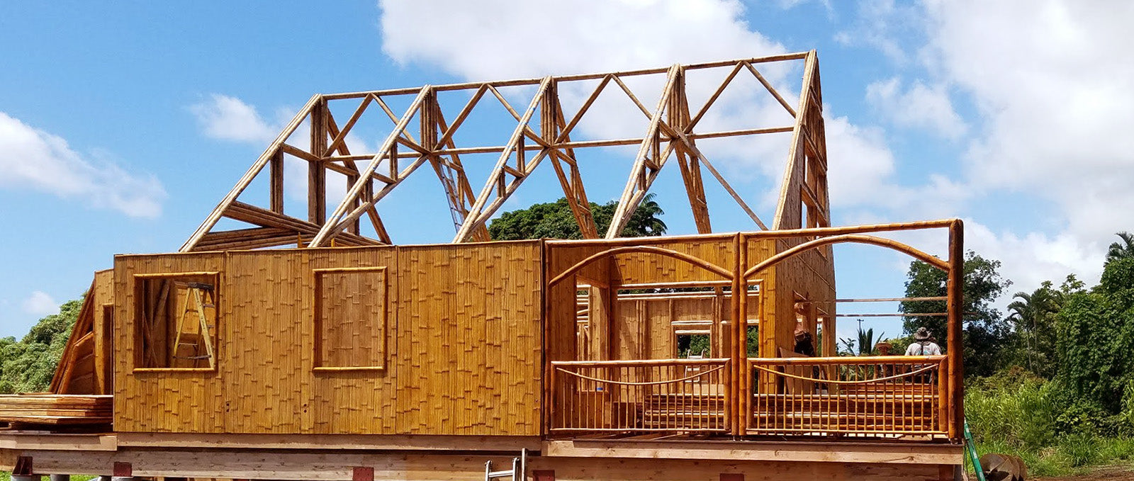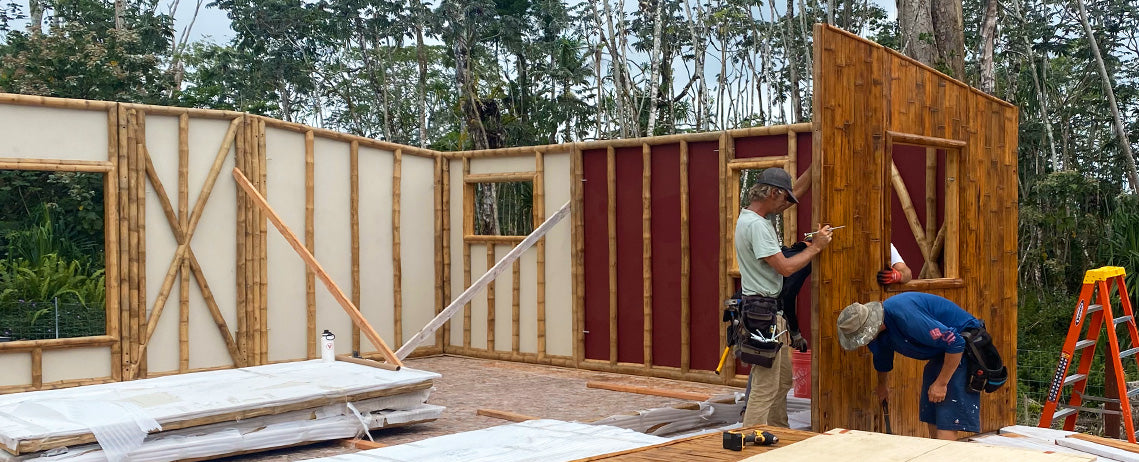 Once you've finalized your model and floor plan design, the fabrication process for your building commences! All components, including wall panels, trusses, porch panels, and more, are pre-fabricated at our factory in Vietnam by a skilled team of bamboo artisans. After fabrication, the building is assembled at the factory to ensure a perfect fit and readiness for shipment. This ensures that when your container filled with the building kit arrives at your site, your building is ready to be assembled by our certified bamboo living assemblers.