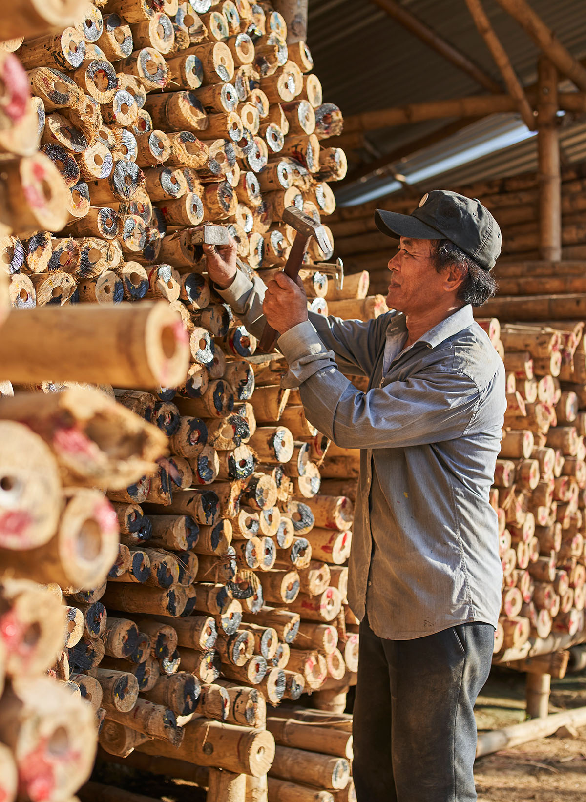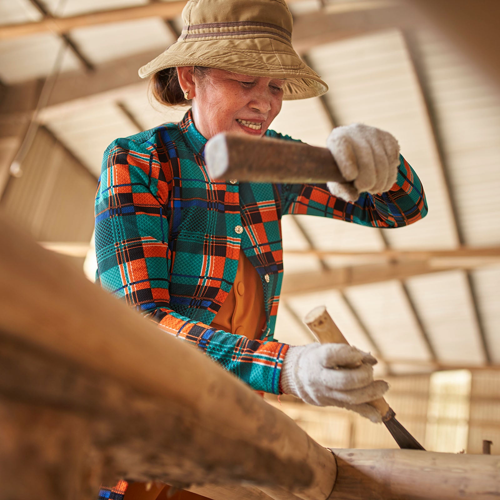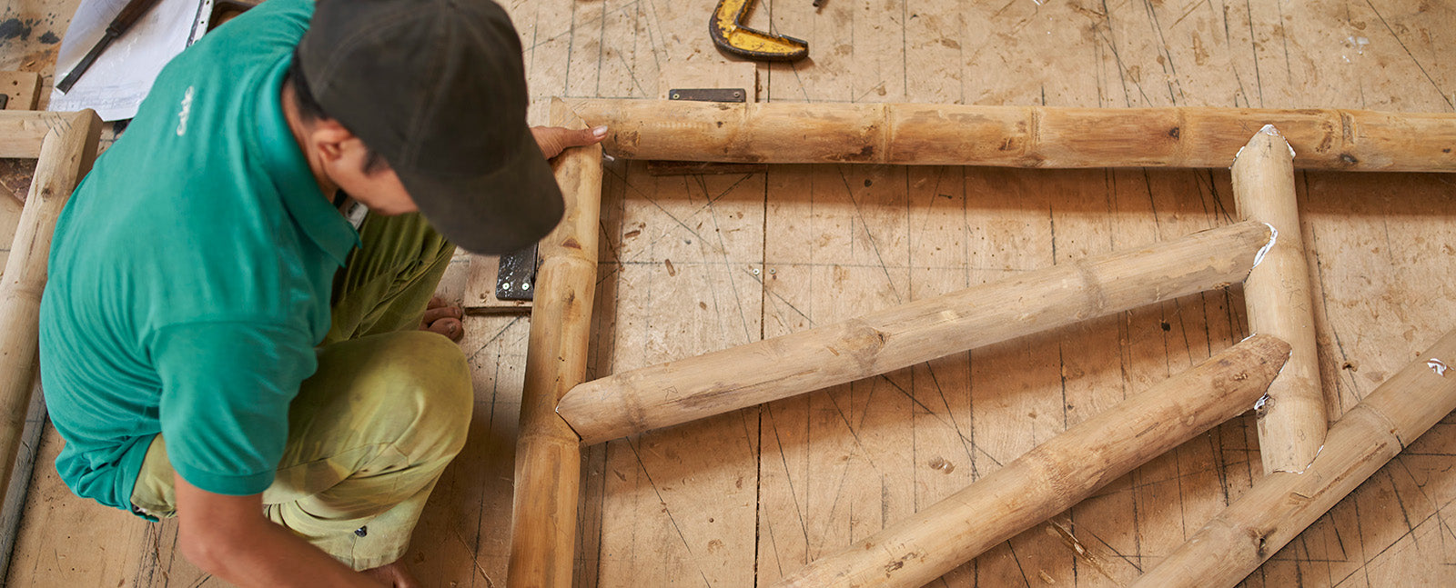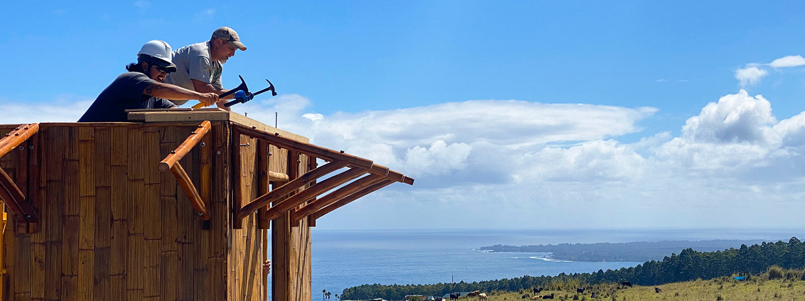 Once you've finalized your model and floor plan design, the fabrication process for your building commences! All components, including wall panels, trusses, porch panels, and more, are pre-fabricated at our factory in Vietnam by a skilled team of bamboo artisans. After fabrication, the building is assembled at the factory to ensure a perfect fit and readiness for shipment. This ensures that when your container filled with the building kit arrives at your site, your building is ready to be assembled by our certified bamboo living assemblers.